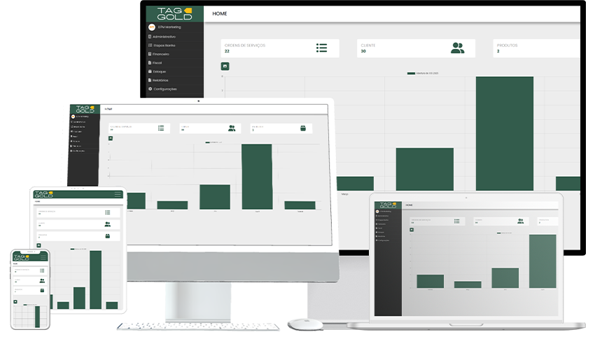 Nosso sistema se adapta a qualquer dispositivo — computador, tablet ou celular. Acesse suas informações de forma prática e eficiente, garantindo controle e produtividade em qualquer lugar.